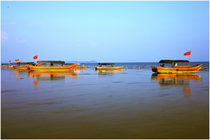 万尾金滩上风平浪静,宜于玩海;远处水天一色,舟帆点点,大可入画;岸边有长达数十里的环岛大堤,沿堤遍植林木,漫步林中,清爽宜人,别具情趣。