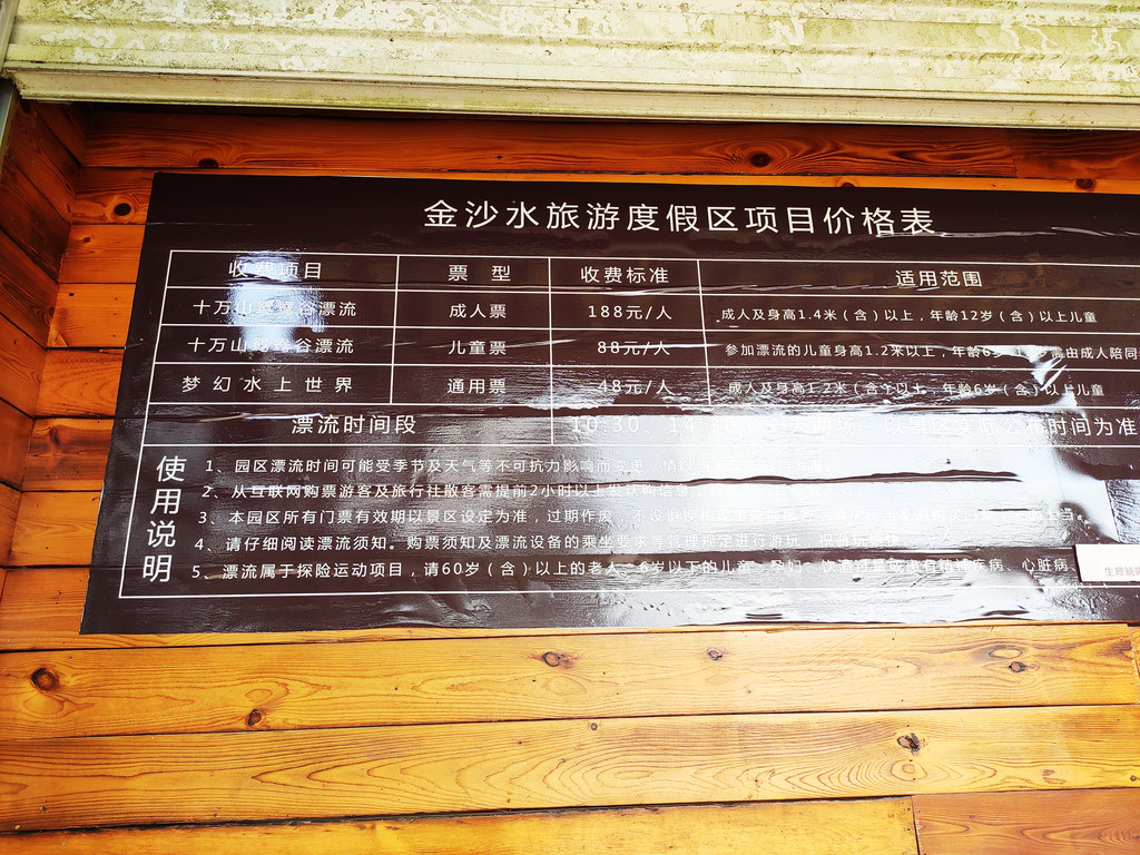“金沙水漂流全程3.9公里,落差108米,漂流时长约1小时。沿途峡谷纵深,河道曲折,水质清纯...水流湍急处体验800米滑道,冲击S形弯道,使人享受宛如水上”过山车“的快感;80米幽谧时光隧道,使人恍若穿越时空...”-搬自【金沙水景区】公众号