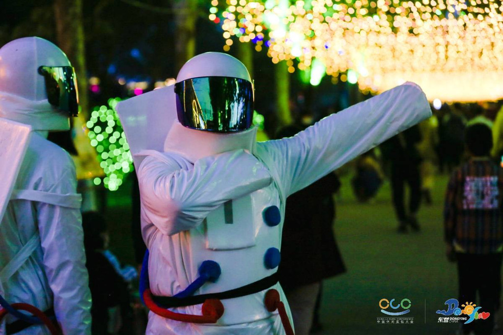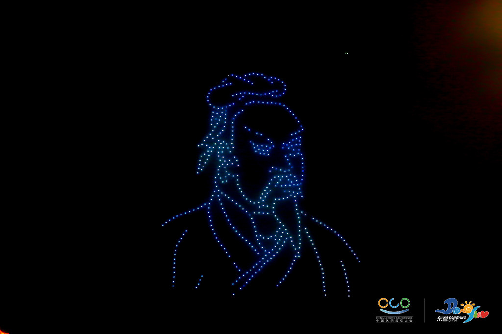 在2021中国休闲度假大会期间的清风湖休闲之夜,500架无人机,盘旋于清风湖上,在律动的蓝色、红色和黄色中来回置换、抽离、重组,打造出精美绝伦的9幅画面,带着璀璨灯光绽放全城,展现东营独特的文化标志,带给市民一场炫酷浪漫的顶级视觉盛宴。