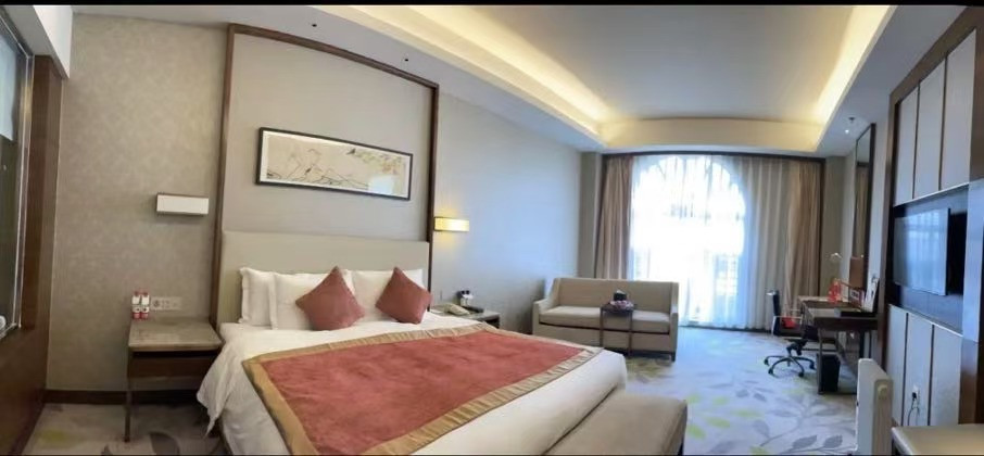 第④站东营蓝海御华温泉酒店,作为市区住宿的落脚点,房间价格也不贵,399块钱一间大床或者双床任选,大床2米的超大床,赠送双人份的温泉,温泉/游泳/健身/盐疗均可体验,光在温泉区域就能待上一下午,经过1天半的游玩最后一天下午在此处放松一下,现在冬季除了人多一些其余没毛病,房间也很静谧可以好好休息,没有要早餐,附近有比较火的安兴早市距离不远十来分钟车程,到早上9点左右结束,各种小吃应有尽有,酒店对面有一个名东园的公园,苏州园林的设计拍照特别出片。