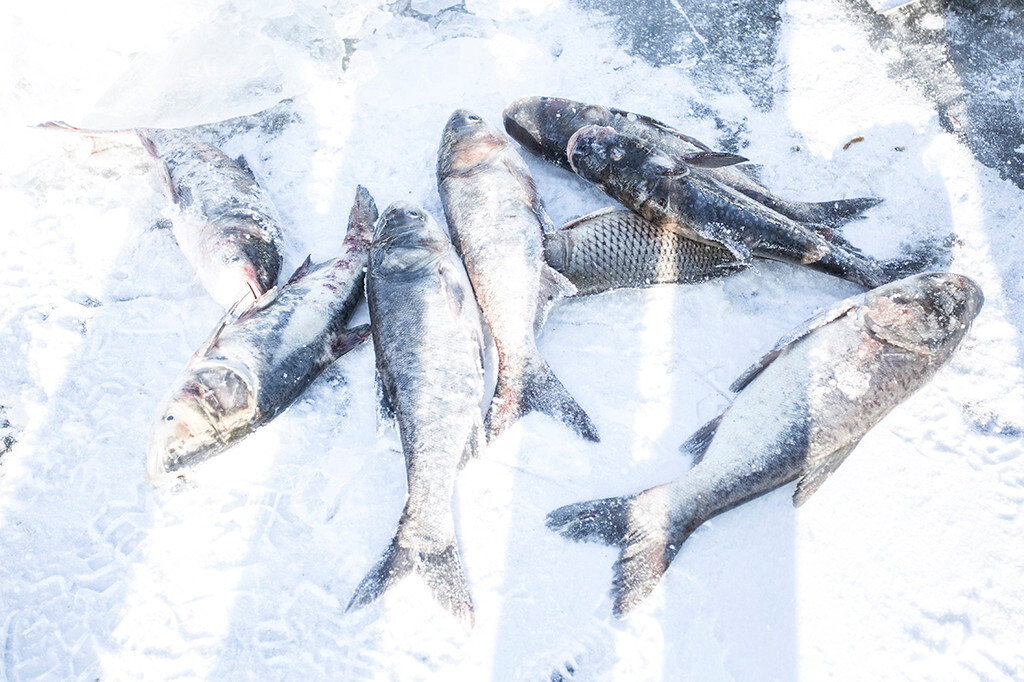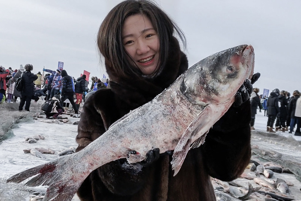 很多游客看着冰上翻腾的无数条鱼,在一阵观望后捡起了最大的一条,重达10多斤,一边抱着大鱼,一边说着年年有余,图个好彩头!当地的渔民在出网处看到了小鱼,也会扔到 水里 ,待到大一些再捕捞上来。