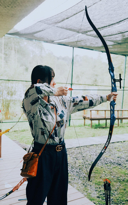 不得不说这个躬还是很紧的,我的手臂力量不太够,并不能拉直展臂,箭枝瞄准、射出去,还要控制幅度,确实也是一个需要长久训练的项目。