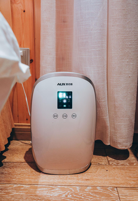 房间配备了精华、除湿等一体的小机器。在山间居住,相对湿气会大一些,有了除湿的小机器,一晚上倒也能安眠。