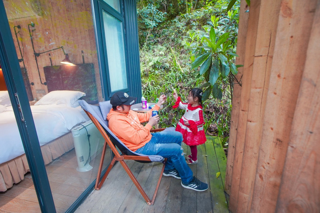 森林小屋:森林小屋被安置在缇心谷的尽头,这里更像是一片森林里的秘境,相比树屋,森林小屋的面积要带一点,如果带小孩子没有定到亲子房的话,我更建议大家预定这个房型。