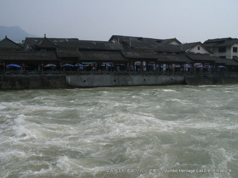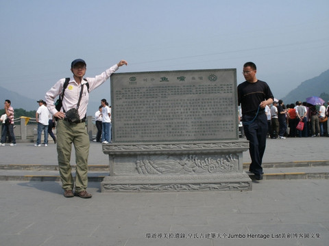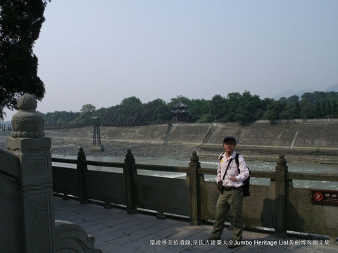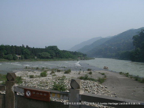 Jumbo Huang citation resources: The Dujiangyan is an ancient irrigation system in Dujiangyan City, Sichuan, China. Originally constructed around 256 BC by the State of Qin as an irrigation and flood control project, it is still in use today. The system's infrastructure develops on the Min River (Minjiang), the longest tributary of the Yangtze. The area is in the west part of the Chengdu Plain, between the Sichuan basin and the Tibetan plateau. Originally, the Min would rush down from the Min Mountains and slow down abruptly after reaching the Chengdu Plain, filling the watercourse with silt, thus making the nearby areas extremely prone to floods. Li Bing, then governor of Shu for the state of Qin, and his son headed the construction of the Dujiangyan, which harnessed the river using a new method of channeling and dividing the water rather than simply damming it. The water management scheme is still in use today to irrigate over 5,300 square kilometres (2,000 sq mi) of land in the region. The Dujiangyan, the Zhengguo Canal in Shaanxi and the Lingqu Canal in Guangxi are collectively known as the "three great hydraulic engineering projects of the Qin."