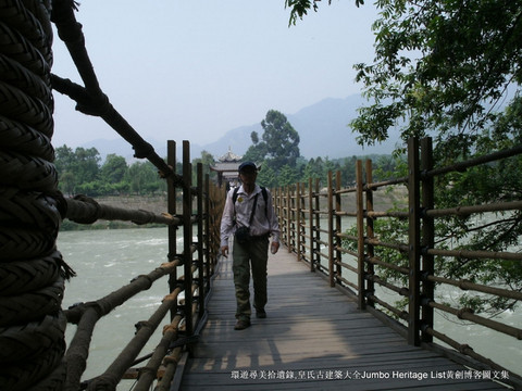 安澜桥俗称索桥,横跨岷江都江堰上。旧时以竹为缆,木桩为墩,承托竹索,连贯而成。上铺木板,旁设缆索,全长500余米。桥始建于宋代之前,明末毁于战火,清嘉庆年间重建。。。