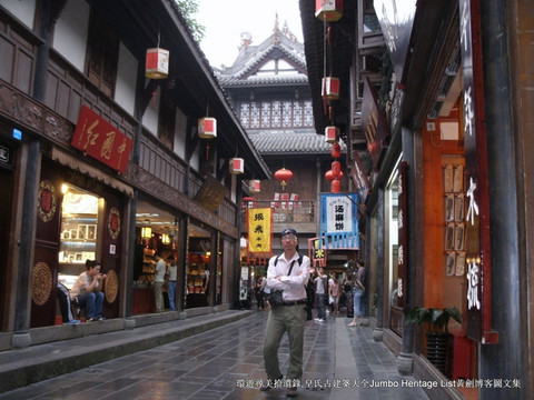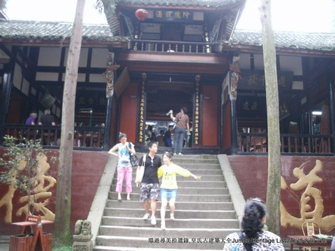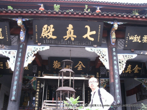 我爬到上清宫参观,最后走到七真殿时,已经是满头大汗了。我从遇仙亭穿过,继续往山上爬。下山之后我返回市区,途经金沙大酒店,再次来到锦里参观。这里是仿古一条街,到处是成都小吃。。。
