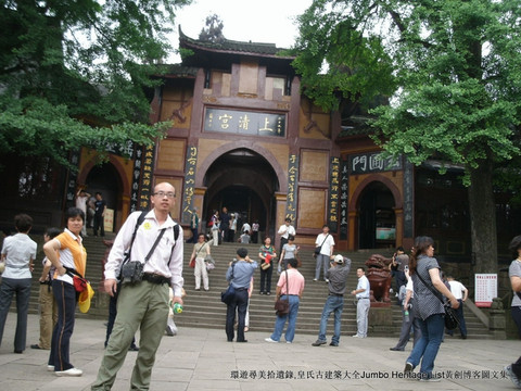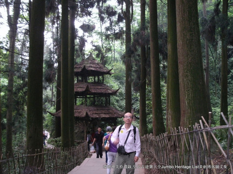 我们参观了南桥,然后乘车来到青城山,此山为我国道教发源地之一,属道教名山之一。位于四川省都江堰市西南,古称“可韩山”、“丈人山”,东距成都市68公里,处于都江堰水利工程西南10公里处。主峰老霄顶海拔1600米。在四川名山中与剑门之险、峨嵋之秀、夔门之雄齐名,有“青城天下幽”之美誉。