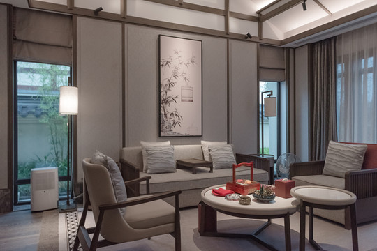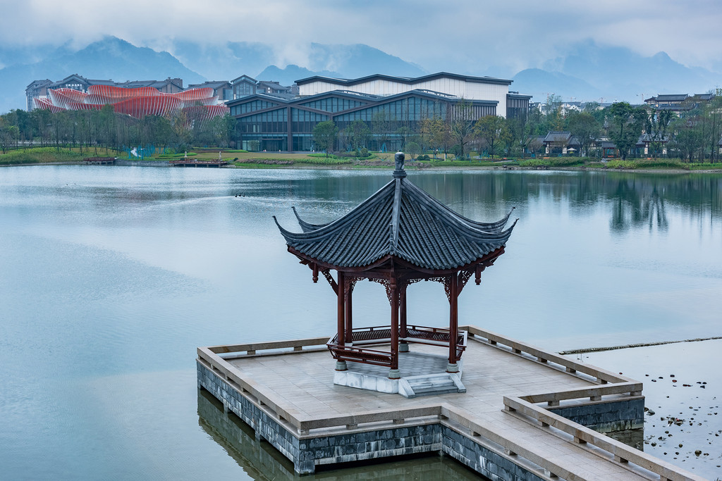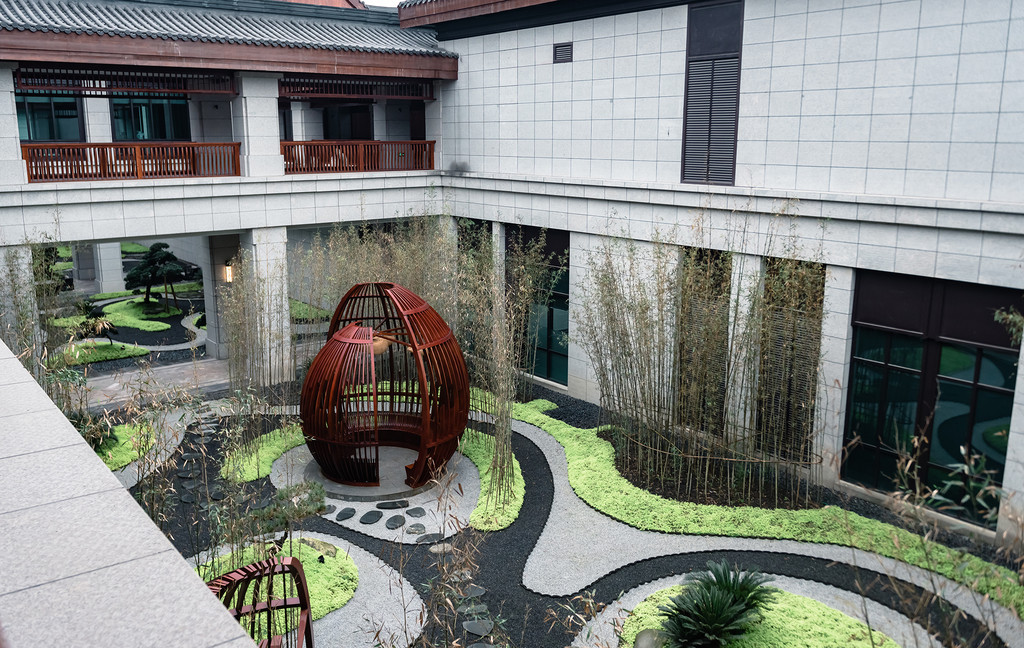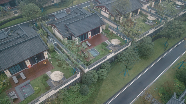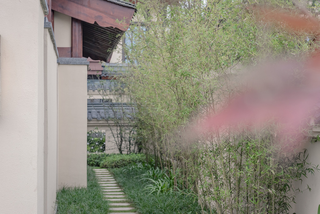 从青城山下来,在都江堰市区旁的竹林与江畔的别墅形奢华酒店——成都融创万达文华酒店。落脚在岷江与青城山之间、很是安静,穿过都市里喧嚣的人群,通过曲径通幽的前道、一座重塑中国古典庭院朴素之美的建筑便出现在眼前。