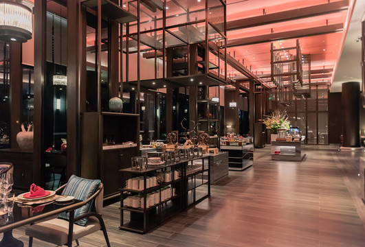 大堂以成都古建筑“杜甫草堂”为商业设计灵感,整体面积500平方米、建筑层高24米,彰显出蜀汉的大气和青城山沉稳的格调。