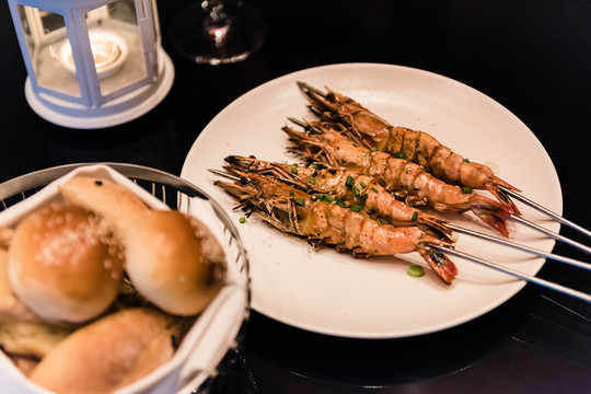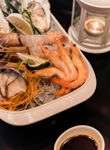 主菜是海鲜盛宴+炭烤羊排,新鲜美味的西班牙鳌虾沾上芥末酱油,口感吃起来带有一丝甜,要说我这样的口感在成都绝对找不出第二家。