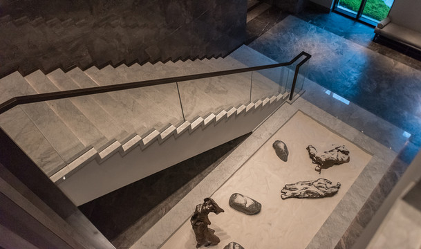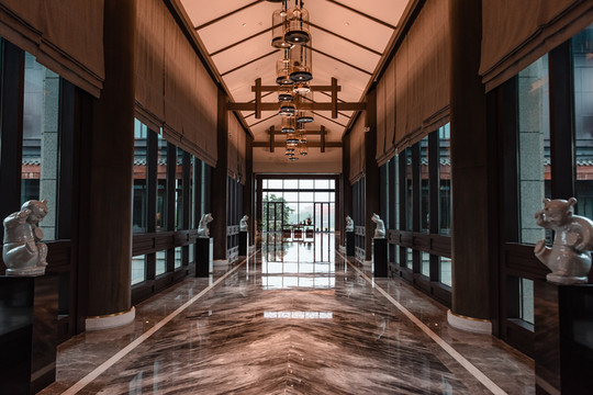 悬有鸟笼灯饰的过廊,说唱俑喜笑颜开的欢迎着每一位到访的人,酒店大堂豁然明朗。