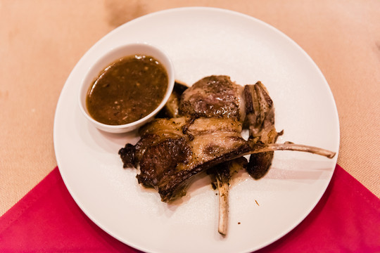炭烤迷迭香羊排虽然外表有一点点焦脆,但内里肉嫩,每一口下去都是三分熟的口感。基本上两块羊排下去就已经很饱了。