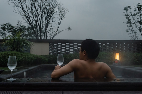 氤氲的雾气飘飘荡荡,勾引着周身不对劲儿的我们去泡个痛快,不管外面多冷,泡进汤池里就是二人独处最好的时光。