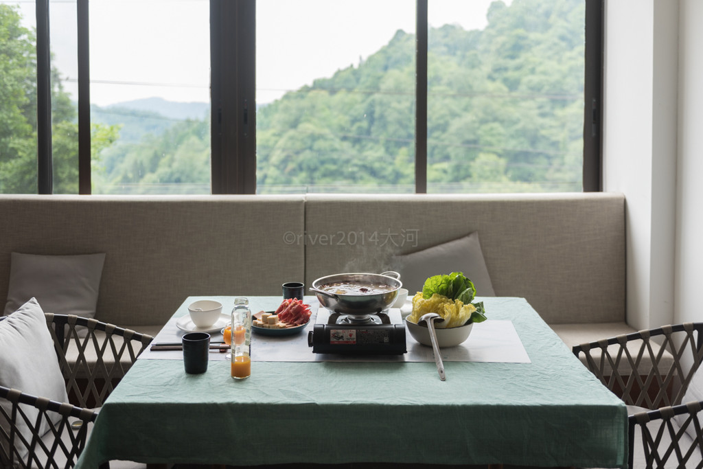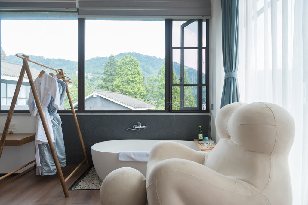 酒店的每个房间都有一个泡池,用一池热水洗去疲惫,然后泡一杯茶,听着风声入眠,又在清晨的鸟叫声中醒来,这才是青城山的慢生活。