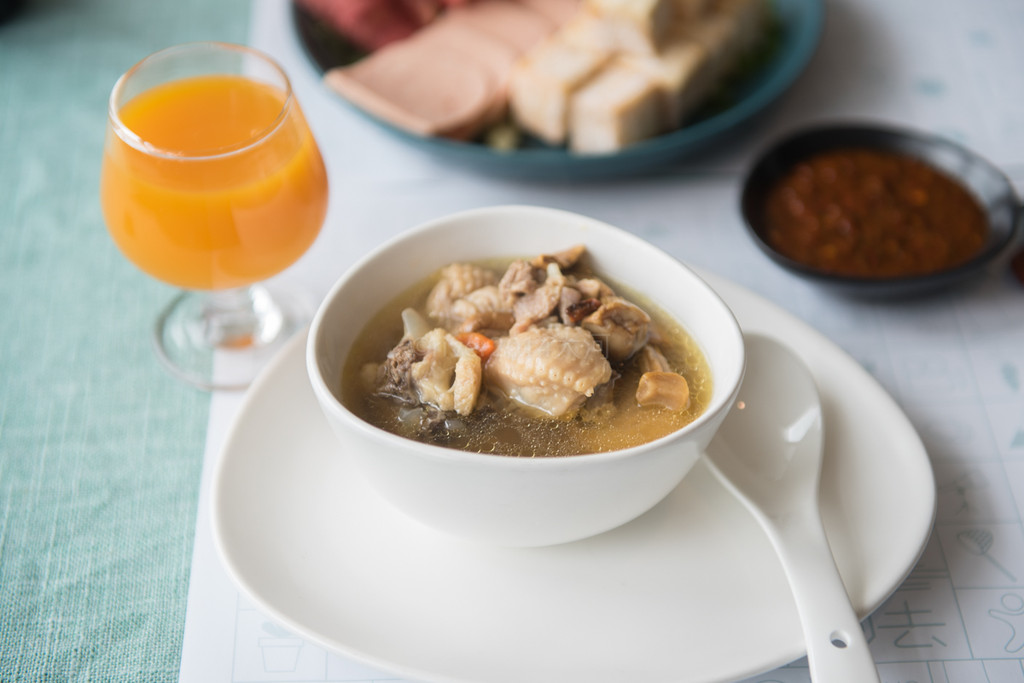 从都江堰来青城山的路上,就看见路边有很多鸡肉店,果然酒店里也提供鸡肉锅。晚餐就在酒店的餐厅里享用了,餐厅环境雅致,鸡肉锅里正在冒出香气。