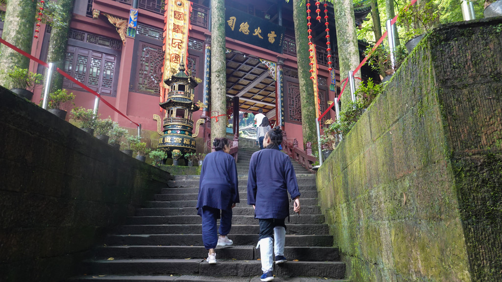 寺庙也是依山而建,高低错落的古建筑隐藏在浓密的森林中。与寺外喧嚣热闹的古镇相比,寺内非常安静。