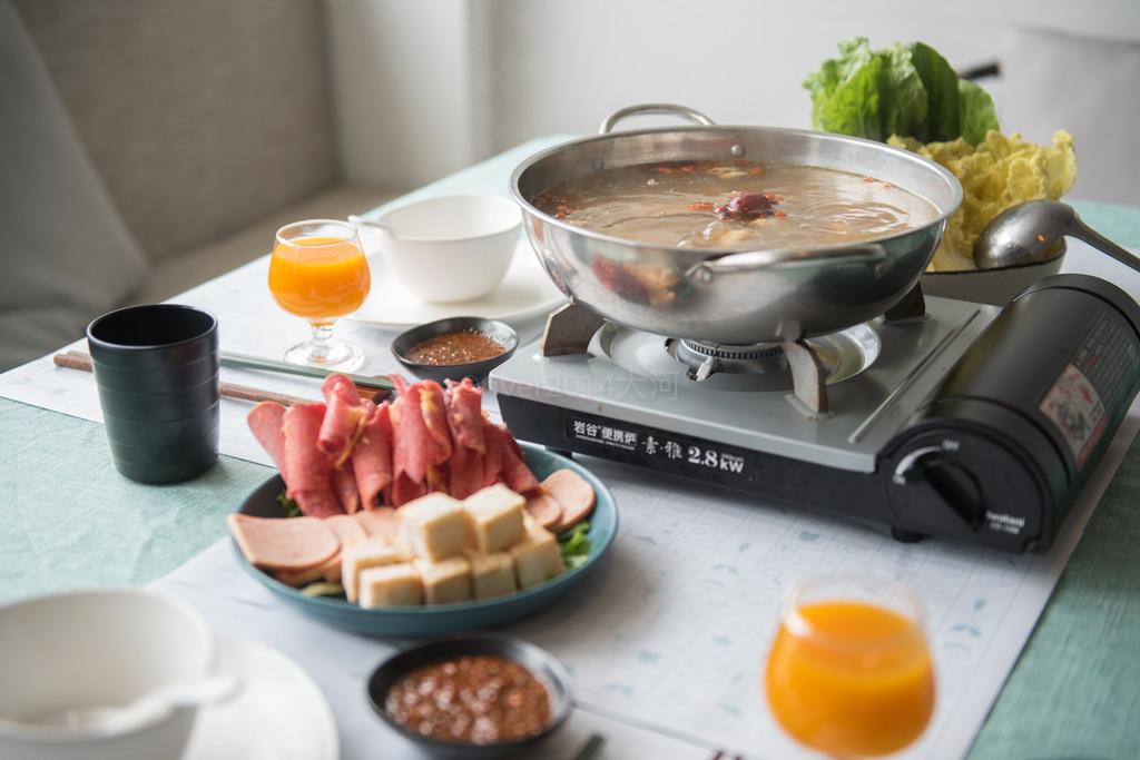 点了一个松茸土鸡锅,除了满满的一锅鸡以外,还有好几种涮菜,足够两个人吃饱。山里的鸡肉质紧实,吃起来特别香,鸡汤的味道也非常鲜美。