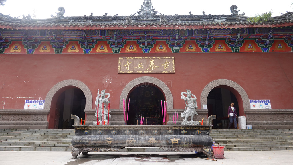 古镇上有一座寺庙,叫做古泰安寺,是青城山中历史最悠久的一座寺庙。据史料记载,泰安寺始建于唐代,明末毁于兵火,清初重建。