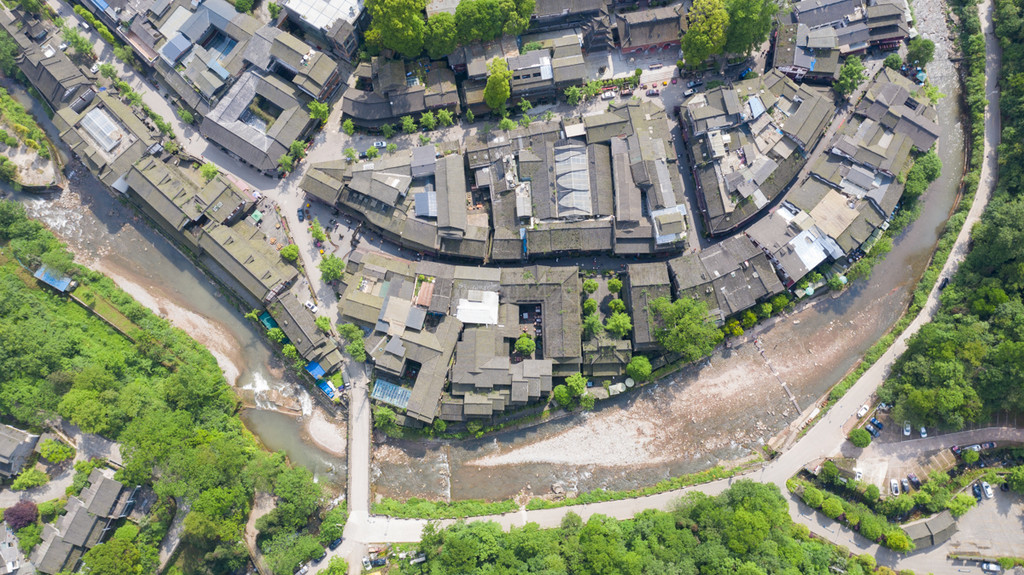 这座古镇沿河而建,河边是人们喝茶休闲的好地方。山里空气清新,适合周末出游。