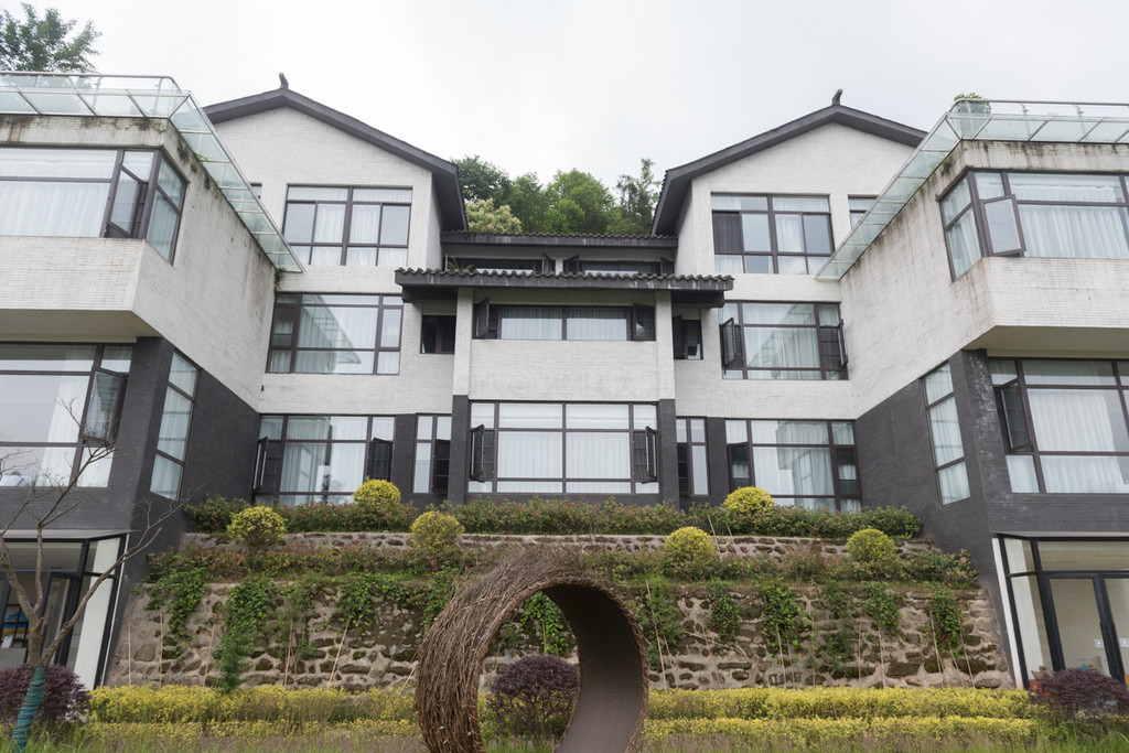 这次预订的酒店叫做青城山桐去山境度假酒店。酒店位于青城山中,差不多在青城山的前山和后山中间的位置,去哪里都不算远。酒店依山而建,层层叠叠,房间正对着青翠的青城山。