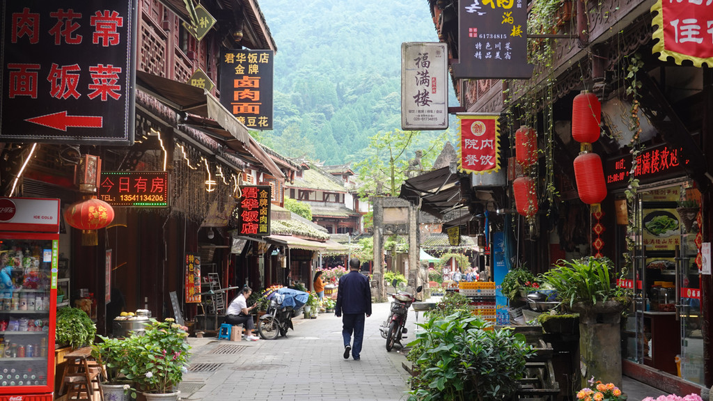泰安古镇是青城后山最知名的景点,在古代这里就是成都与茂汶、金川地区物资交流的中转站,商业发达。如今这座古镇也是许多成都人周末前来休闲度假的地方,老街上到处都是饭馆。