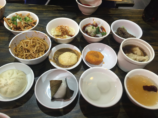 到了酒店之后,管家得知我不能吃辣,早餐还特意准备了不辣的抄手给我。晚上两人直奔文殊院,无辣不欢的闺蜜直奔张凉粉,点了非常有名的黄凉粉和甜水面,但没想到并不是特别辣有点发甜,让闺蜜郁闷了半天。两人转战龙抄手,点了小吃套餐,味道一般,除了担担面让闺蜜惊艳了一下,其他都很一般。