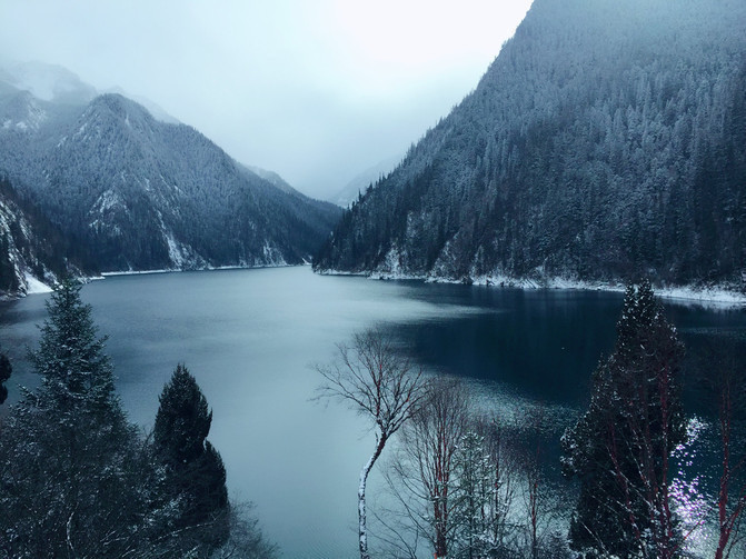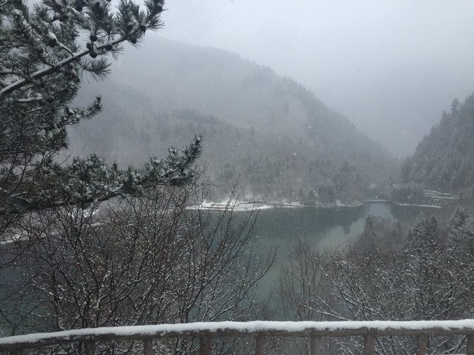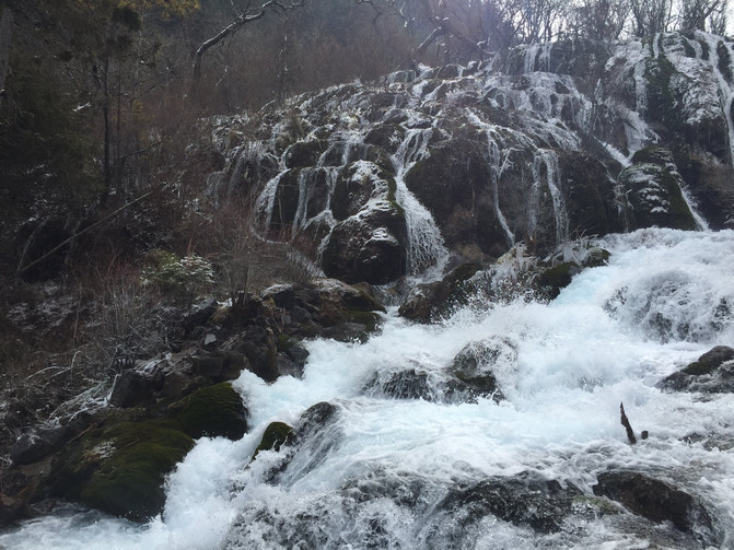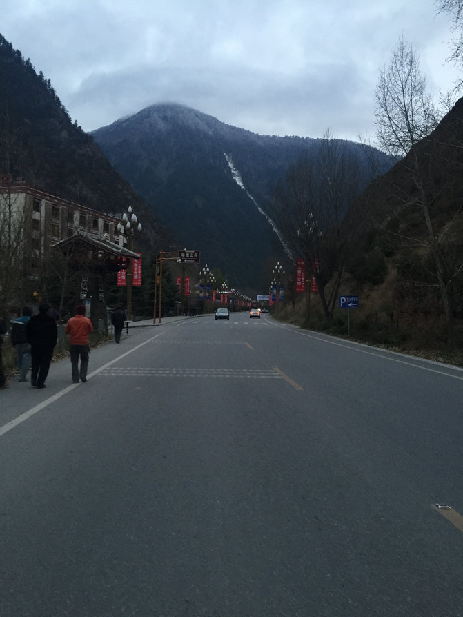 晚上18点左右到达九寨沟,突然的白色让我异常开心,听当地藏民说,能赶上下雪也很不容易的。当晚入住九寨沟沟口的宾馆,环境都一般,可能是因为淡季的缘故,价格都比较便宜,适宜穷游人士入住,步行至九寨入口10分钟,非常便捷。因为入住放好行李时间已经比较晚了,许多店铺都关门了,就在门口旁边吃了点,所以在淡季在九寨吃饭得趁早。