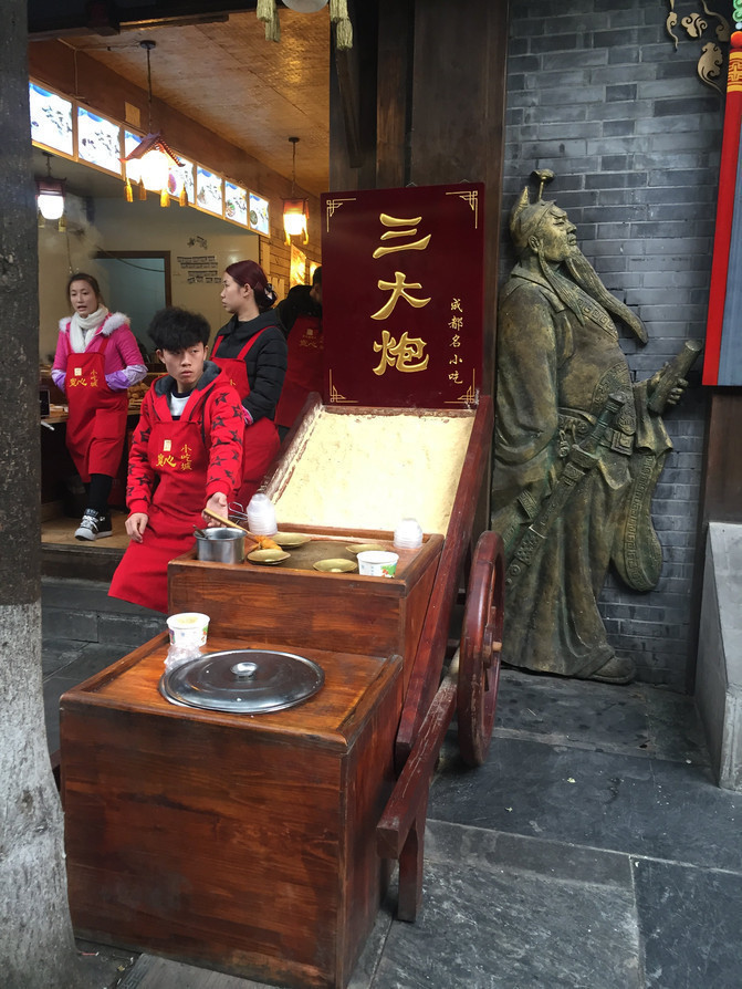 悠然的时光过后两人直奔武侯祠和锦里,因为是两个地道的吃货,对三国文化没有什么太大兴趣所以没有进武侯祠,只是在锦里大吃一通,锦里真是成都小吃的荟萃,种类太多了应接不暇,两人果断决定在此解决晚餐,美食推荐李长青三大炮、凉糕、牛肉焦饼、张飞牛肉、蛋烘糕。溜达完后时间还不算太晚,两个无聊人的溜达到春熙路,感受一下商业街的氛围,然后发现四川果然出美女,看的各种羡慕嫉妒啊。