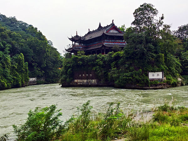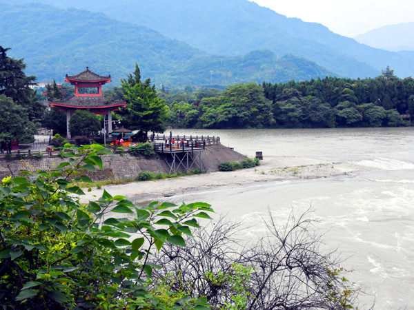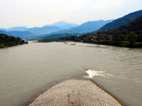 最后第三次来到鱼嘴分水堤,从这里远看,岷江之水天上来,它发源于松潘县弓杠岭,流经茂县、汶川、都江堰、乐山等地,在宜宾市与金沙江汇合,称为长江。它全长735公里,年平均流量496秒立方米。正是因为它水源丰富,从上游高山峡谷,汹涌澎湃,奔驰到这里,面对着地势渐低的扇形川西平原,没有束缚,一到洪期就形成严重的水患。直至李冰父子的工程杰作治了水患。