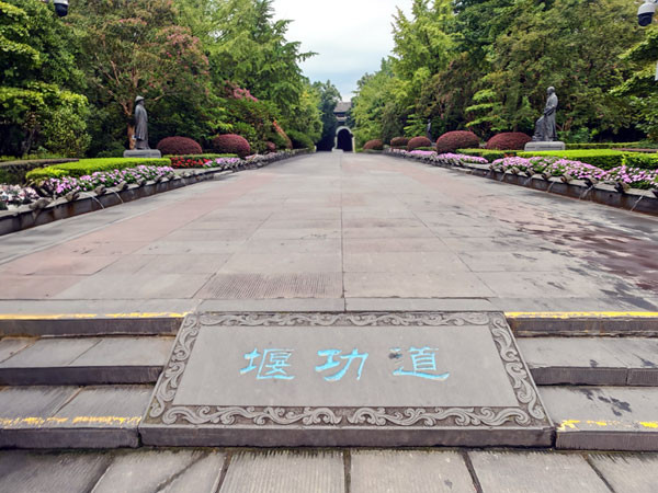 “堰”指都江堰,“功”即功绩、功劳。顾名思义,“堰功道”是一条颂扬和纪念历代治水先贤功绩的道路。它不仅仅是一条通道,更是一个露天的历史纪念馆,体现了后人“吃水不忘挖井人”的感恩之情。
