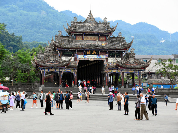 游客漫步在堰功道上,两侧是静静矗立的先贤雕像,脚下是流水潺潺,头顶是参天古木的荫蔽。这种环境让人不由自主地产生对历史的敬畏感和对古代人民智慧的赞叹之情,是游览都江堰时感受其深厚历史文化底蕴的绝佳起点。