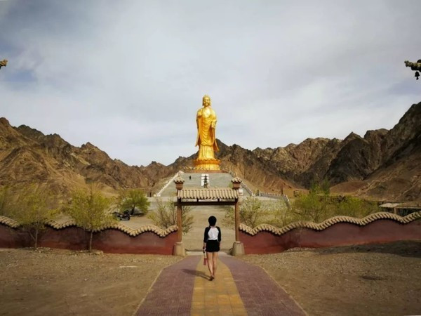 沿着大泉河一路穿越,当你沿断崖而行,从无限的苍凉跋涉而来,以为前面应是渺渺的炊烟人家,你以为已经越过伟岸而趋于平静——却骤见巍峨金光,远处便是南山寺大铜佛。不远处有一口观音井,井水清冽非常,喝一口,有着浸透肺腑的凉,润泽肌骨的甘,像是哪位仙人打出来,从神仙府邸引水至此。接下来,沿着乐僔的脚步攀过这一片山丘,经过南天门,到他当初修行的乐僔堂去,在那里,以他的视角俯瞰莫高窟。至乐僔堂,于崖壁上打坐,体会当年乐僔修行的心境,可想而知,当年乐僔云游至此,满眼都是粗犷与冷峻的山峰,他本想稍作歇息便上路,突然远眺了一眼对面,只见千佛闪耀,心有所悟,于是,凿下第一个石窟。至此,从十六国至元长达975年的莫高凿窟史正式拉开了帷幕。