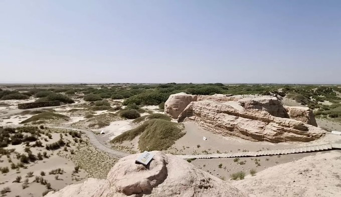 漫步于空无一人的荒凉之城中,天高地远,明晃晃的太阳光照射在一堆堆土黄色的沙丘之上,仿佛千年的光阴只有风沙亲吻了这座自汉时修建,唐时兴盛,明时闭关废弃的城,而余下的一切皆有迹可循。于是,你看见了驻扎士兵的西城、驻军将领及其家属居住的东城,西北角墩上的擂台军事设施,以及周围分南、北、中三条主渠,东西贯通,南北相连,总长度达百余公里的汉唐时期的古渠道。在旌旗猎猎、战马嘶鸣中,依稀可看到眼前晃过的狼烟高扬,鼻尖漫开血腥和沙土相互裹搅的味道,战鼓声恍若震天的雷平地惊起。而待到休战时,守卫边疆的将士会和家人一起开垦荒地,灌溉农田,于是在这记录了一幕幕风云际会的古老城池中,也留下了背后的脉脉温情,只留待千年后人们的追忆。