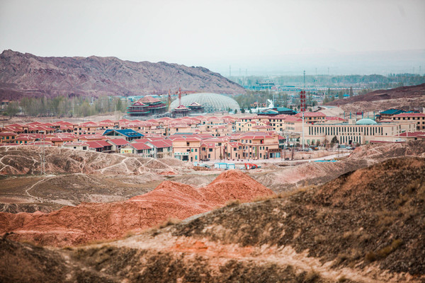 一号观景点应该属于 张掖 丹霞地质公园里观景的最高处了,可以看到大片大片的丹霞地貌和远处的红屋顶小村庄,实在太美了,仿佛来到了 欧洲 小镇。