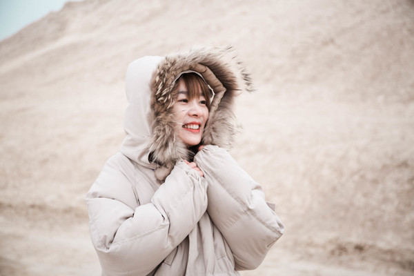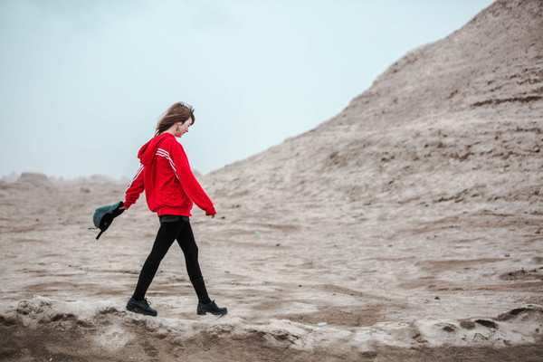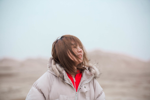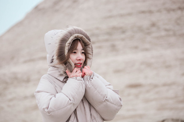 常常遇到风非常非常大,乱了发型。虽然有凌乱美一说,但是风太大,不容易抓拍到好的照片,所以建议搭配一个帽子,可以是自带的鸭舌帽,也可以是衣服上的帽子。
