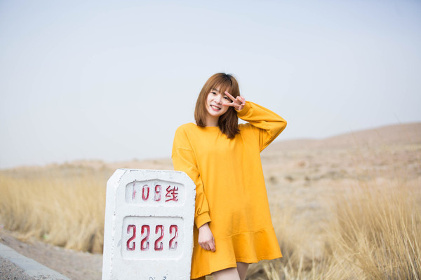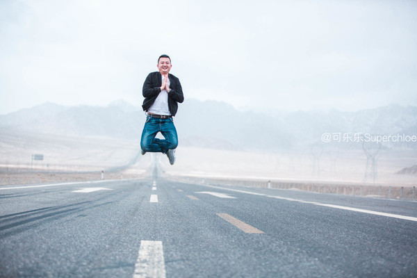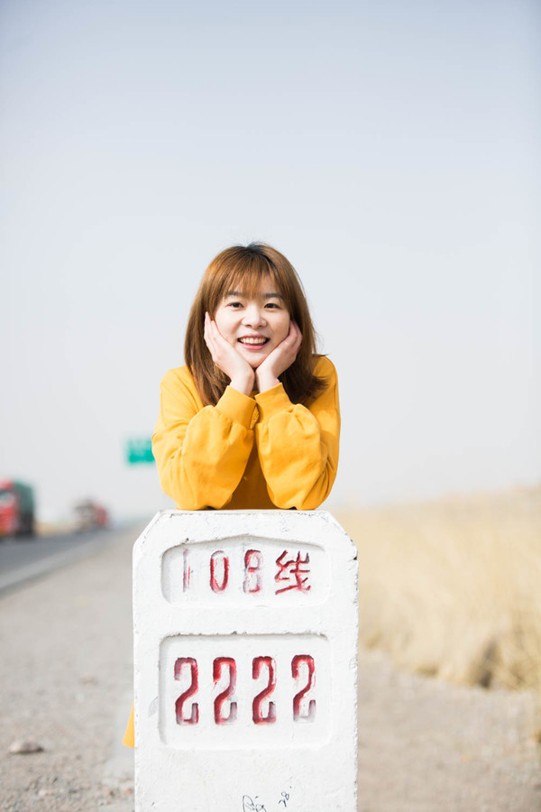 (1)站在路边探头弯腰,把头稍微垂下,顺着公路的方向。这是最常用最优雅的公路拍照方式,哈哈
