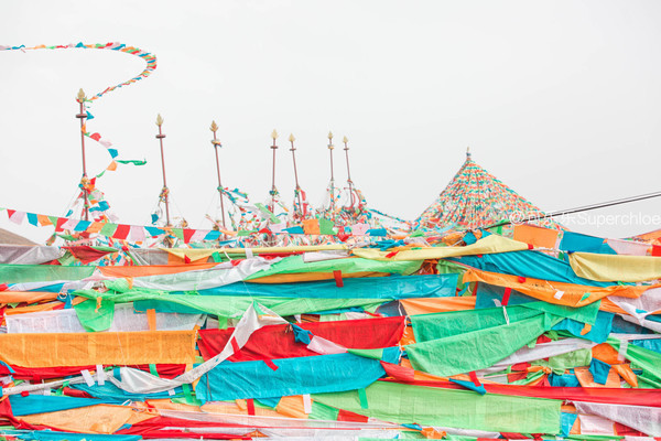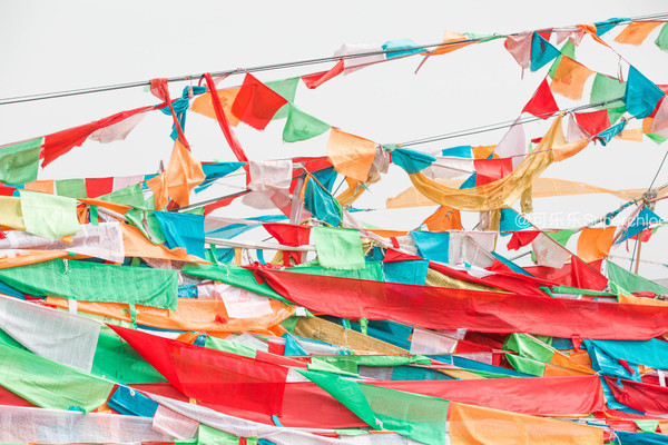 经幡的各种颜色是固定的,是五彩的,所以通常如果是彩色背景,为了能够很好地融入环境,还要突出自己,那么白色应该算是最好的选择了!