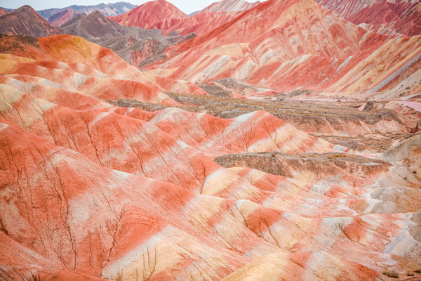 而 张掖 七彩丹霞主要由红色砾石、砂岩和泥岩组成,有明显的干旱、半干旱气候的印迹,以交错层理、四壁陡峭、垂直节理、色彩斑斓而示奇。