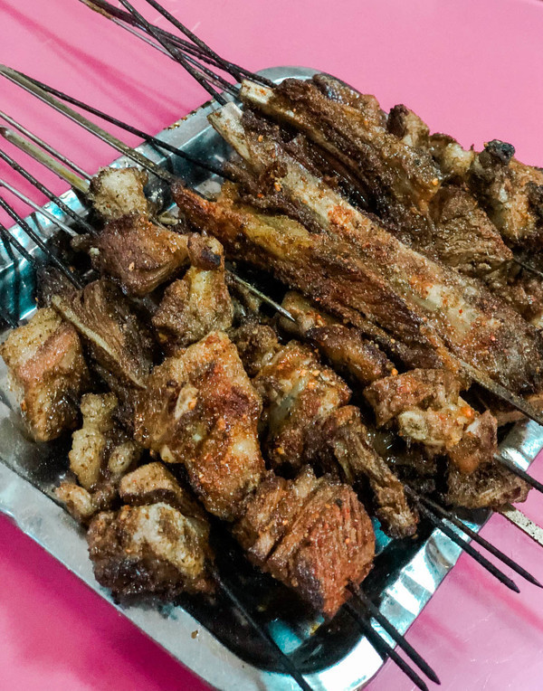 这是我们在 敦煌 最大的沙洲夜市,彻底颠覆了我对夜市的印象。以为夜市是各种小吃摊,原来这里是烧烤夜宵一条街。