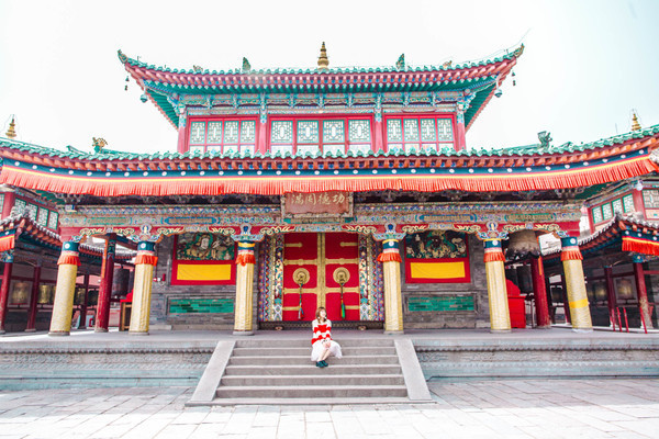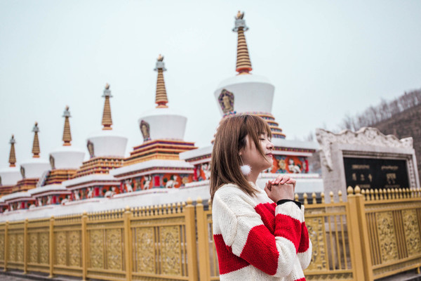 第四,打卡莫高窟的标志性建筑。作为莫高窟的标志,也将成为我们旅行照片的标志。因此以九层楼为背景来一站更是必须的。但是想要拍到整个楼,必须用仰视的角度。这时候人在画面里的位置和比例大家要控制好。
