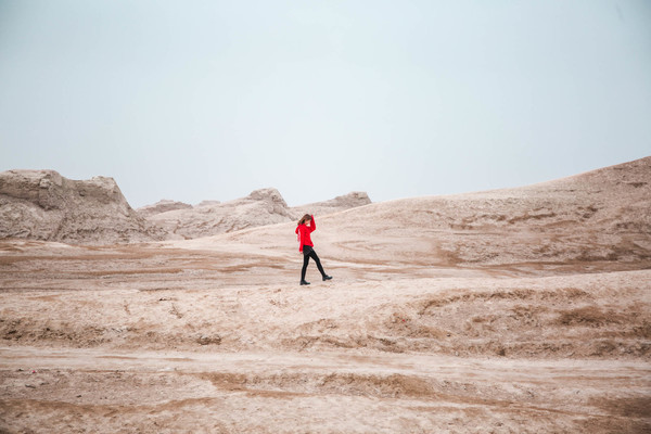 因为魔鬼城非常大,有小山包,有水,有沙漠,所以场景选择是非常多的。可以选择水边,可以选择山丘的合照,也可以选择沙漠上的一块废墟地,分分钟能拍出大片。