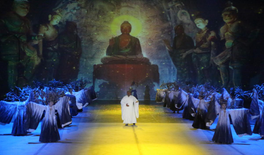 晚上我们订到了敦煌盛典的票,来到了敦煌盛典,进来的第一刻就被装修的气势所折服,原来在满是沙的地方也可以建起这样的建筑物,简直是我梦想的城堡。来到这里看的首部沙漠实景演出,以画匠墨丁和公主的爱情故事贯穿始末,讲述了千年的丝绸文化,一段华丽的人生旅行。首先看到演员精致的面容,曼妙的舞姿,还有配乐,将人与实景紧密的联系在一起,加上舞台的灯光,使场面恢宏壮观,气势磅礴。实在是太好看了吧!没想到沙漠中也可以玩出这么多花样,看着节目,好像自己也穿越了时空隧道,领略两千多年的前敦煌的文化气息。这趟真的是没有来错,感受到了一个不一样的梦幻仙境,带着我穿越,带着我长见识,坐着也是自由,席位可以不断变化,工作人员也很热情。这一演出可能会让我受益终生吧!