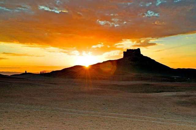 我的第三站是敦煌阳关遗址,最早知道阳关,是小学从王维那首《渭城曲》中:“渭城朝雨浥轻尘,客舍青青柳色新,劝君更尽一杯酒,西出阳关无故人”里听说的。阳关距甘肃省敦煌市西南70公里,是中国古代丝绸之路上的交通咽喉之地。走进是一个阳关博物馆,还有一个烽火台,是汉代的,真的很高哦!