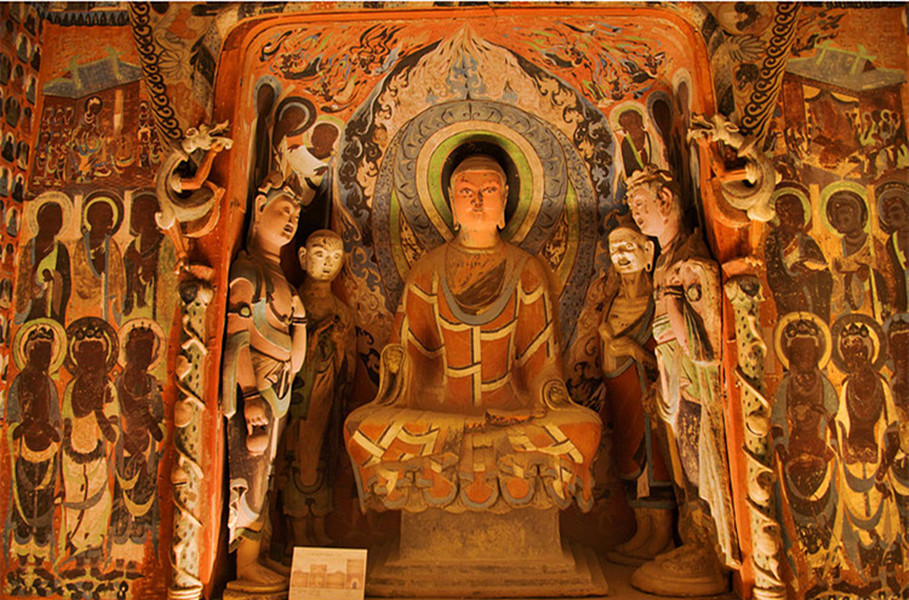 我的第二站是莫高窟,我曾经听说过,这些飞天如何能够具有那些栩栩如生的仪态,在于——每一个飞天,都曾经是一个真正的人,因为她们的美,被古代的法师用法术封印在古老的墙壁上,画师加以修饰,终其一生,用静止演出灵动。我原本自然是不相信的,只是到了这里才知道,那些舞姿仿佛是真实的,自然的,无法用虚假代替。尽管在现代人看来,她们并不美,只是染上历史的颜色,披上神秘的面纱,更是一种独到的韵味。他们经历了这么久的历史还能那样栩栩如生,这古人的技术还真的是高超啊!