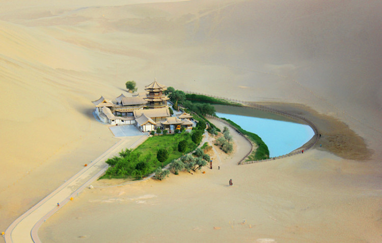 景区里的沙漠面积其实并不大,它的特点在于与中央的月牙泉绿洲彼此依偎,相得益彰。里面还有骑骆驼、沙漠越野车等娱乐项目,这些都是各类沙漠景区的标配了。