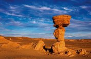 目之所及,除了脚下的墨色砺石,就是沙海上形态各异的风化石柱,但天工造物从来雄奇,沧海桑田之后,这里又别具另一番韵味。