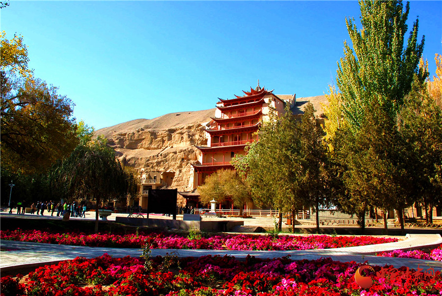 敦煌历经封建社会鼎盛时期汉风唐雨的洗礼,文化灿烂,古迹遍布,到敦煌去,首先想到的是名扬四海的莫高窟。莫高窟俗称千佛洞,被誉为20世纪最有价值的文化发现、“东方的卢浮宫”,以精美的壁画和塑像闻名于世。它始建于十六国的前秦时期,历经十六国、北朝、隋、唐、五代、西夏、元等历代的兴建,形成巨大的规模,现有洞窟735个,壁画4.5万平方米、泥质彩塑2415尊,是世界上现存规模最大、内容最丰富的佛教艺术圣地。近代发现的藏经洞,内有5万多件古代文物,由此衍生专门研究藏经洞典籍和敦煌艺术的学科——敦煌学。1961年,被公布为第一批全国重点文物保护单位之一。1987年,被列为世界文化遗产。 现在莫高窟的保护工作非常到位,平时所有已开放石窟的门,都紧闭着,接待游客时才打开。对每一批游客只开放其中不同的一小部分,洞窟内绝对不允许拍照,一般人也无法拍照,相机、摄像机一律不准带进,洞窟内黑黑的,没有灯光,讲解员用小手电的光束照射进行讲解,游人在昏暗的小手电的光中欣赏那些精美绝伦的壁画和塑像.