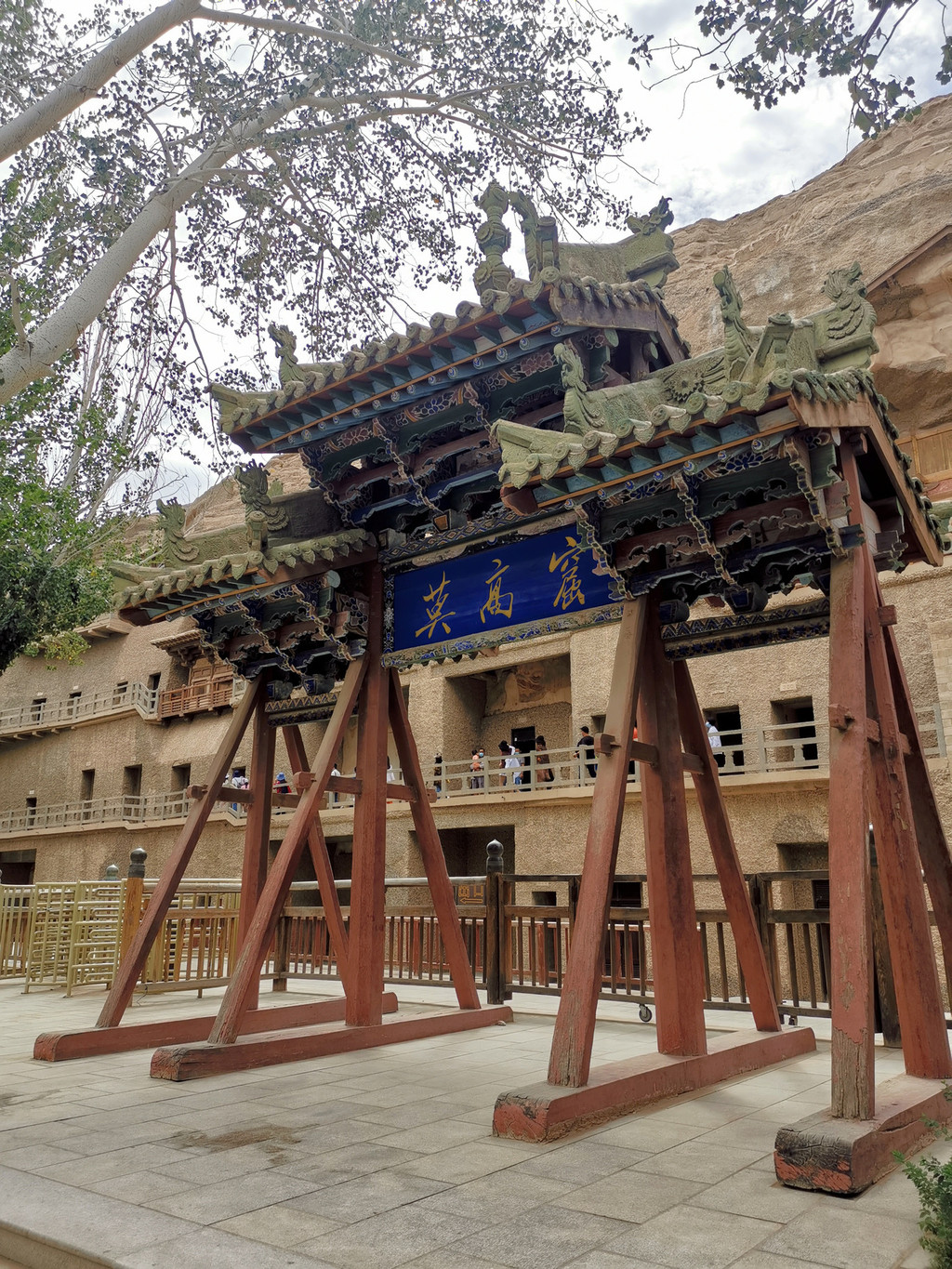 长途奔袭、只为一睹芳容。今天开车又是整整7个小时,我们仍然满怀激情的到了敦煌莫高窟,此时已接近下午4点,正好人少。莫高窟的参观分为A票和B票,出于特殊时期考虑,A票每日限制3000张,几乎是出来就被抢,我们辗转了几个中间商、包括兰州党校的兄弟,还是华丽丽的只能买到B票,区别在于A票8个窟、B票4个窟且均不相同。