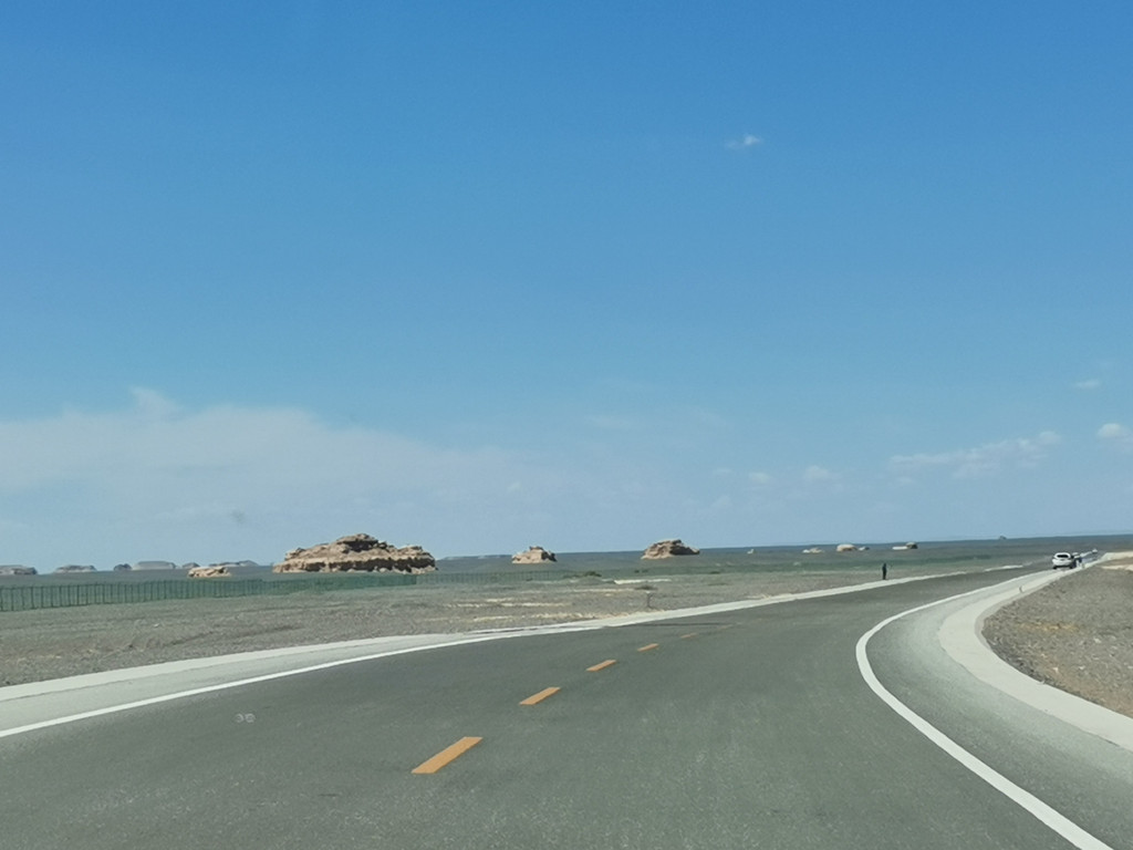 继续驱车前往雅丹地质公园,从本质来说这才算是踏入了当年的西域,一路过去沿路两边都是普氏野马自然保护区。
